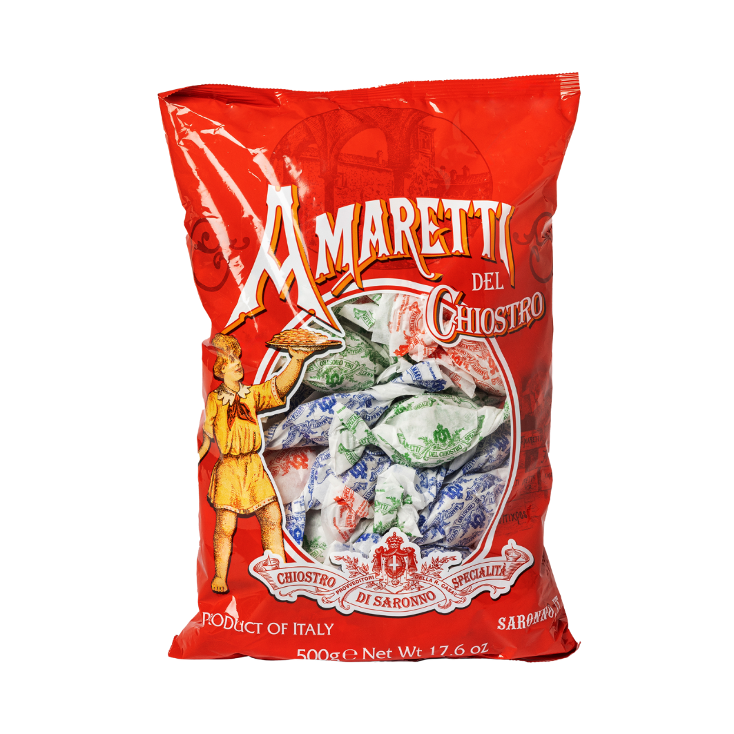 Classic Italian amaretti cookies with a crisp texture and signature bittersweet flavor. Conveniently packaged in a bag, these timeless treats from Chiostro are perfect for sharing, snacking, or pairing with coffee and dessert wine.