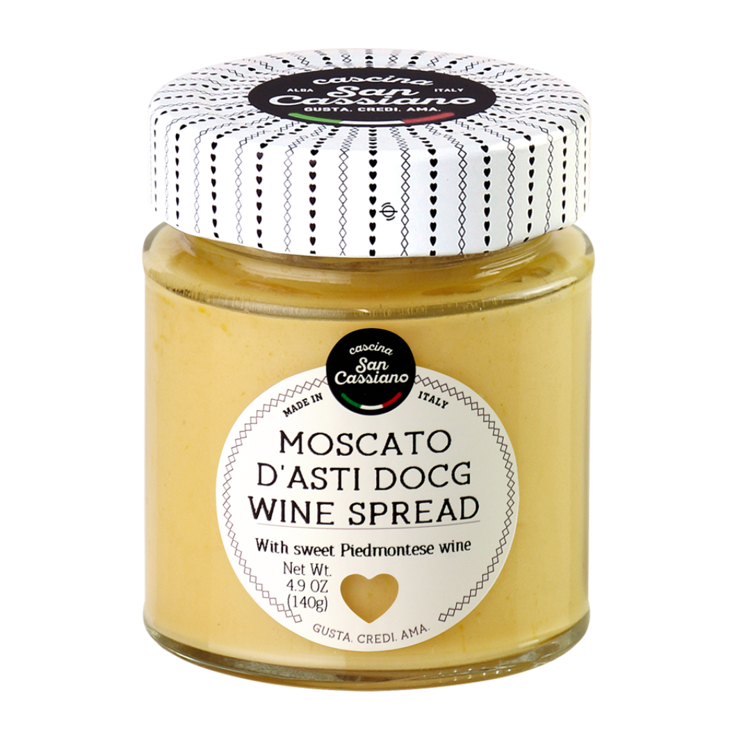 Silky and aromatic, this luxurious spread is made with D.O.C.G. Moscato d’Asti, the renowned sweet wine from Italy’s Piedmont region. Its delicate, floral notes make it a perfect finishing touch for cakes, cookies, pastries, and even ice cream. A sophisticated way to elevate your favorite desserts with a hint of Italian elegance.