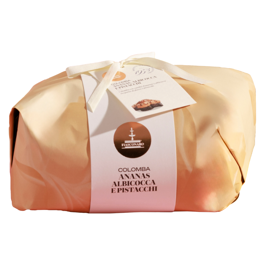 Handcrafted from a 36-hour naturally leavened dough, this soft Colomba is studded with candied pineapple and apricot, and topped with a sweet glaze and whole pistachios. Made with patience, skill, and the finest ingredients, it’s a true celebration of artisanal Italian baking.