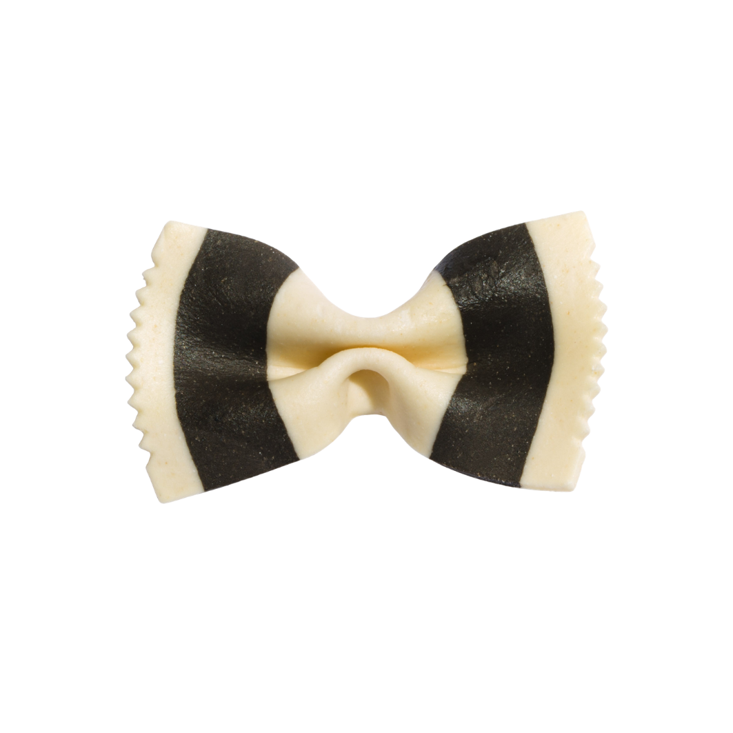 Artisanal farfalle, colored with black squid ink.